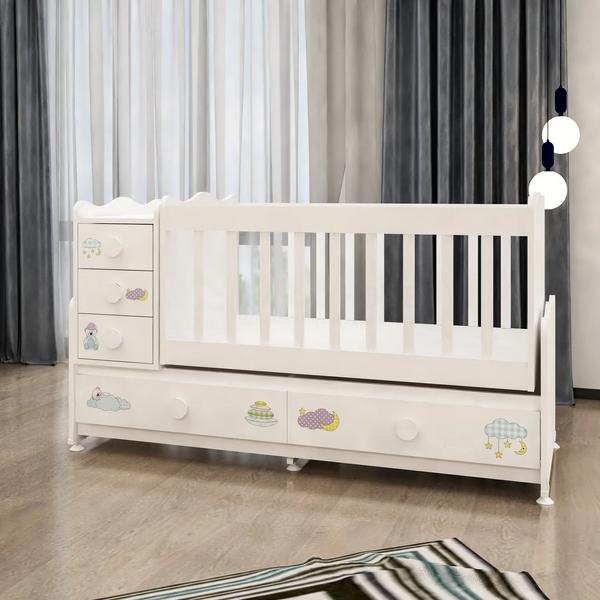 Ürünümüzü beşik olarak kullandırktan sonra 3 çekmeceli komodin ve 2 çekmeceli 65x160 karyola olarak kullanabilirsiniz.