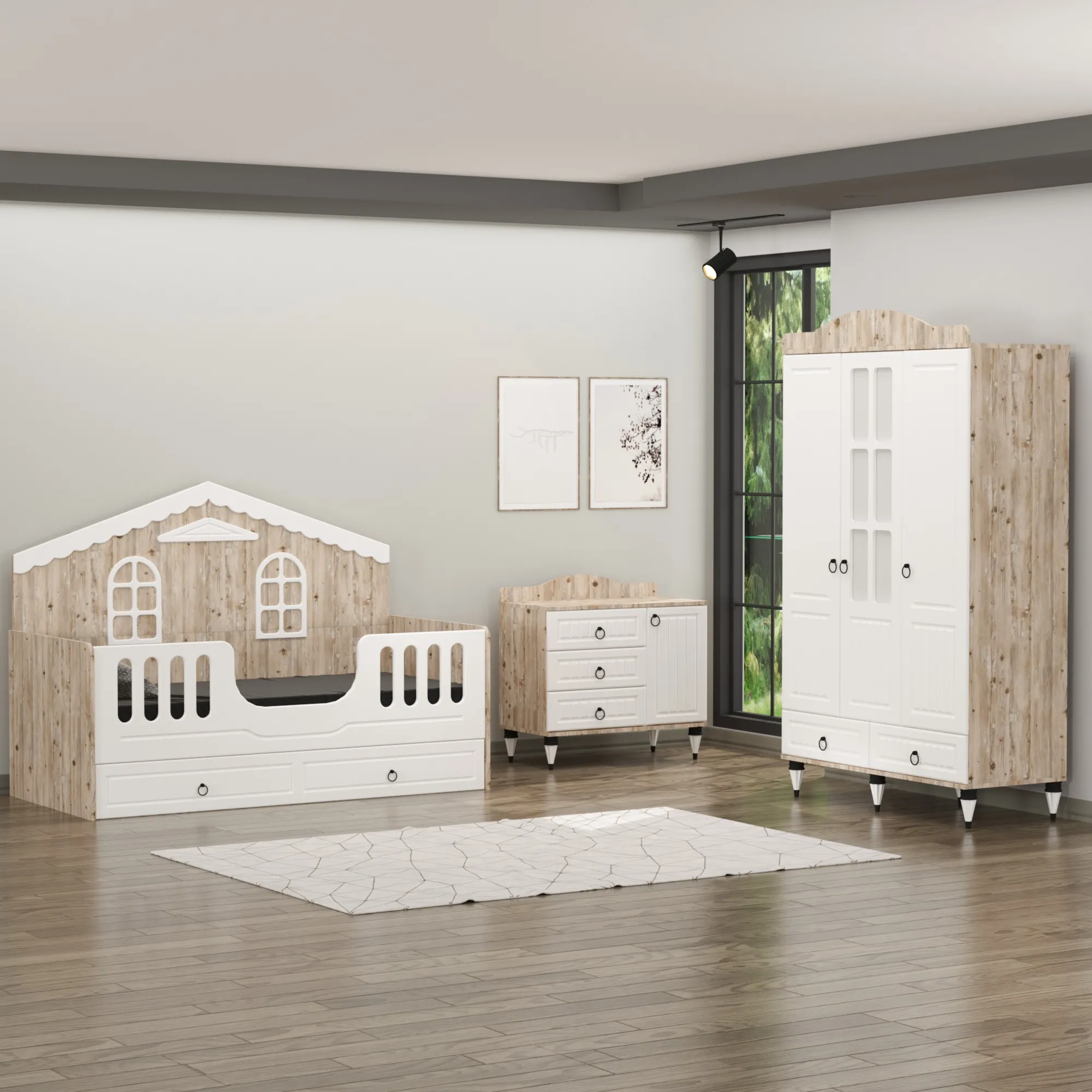 Sude Membran Yavrulu Montessori Çocuk Odası Takımı - Beyaz Soho