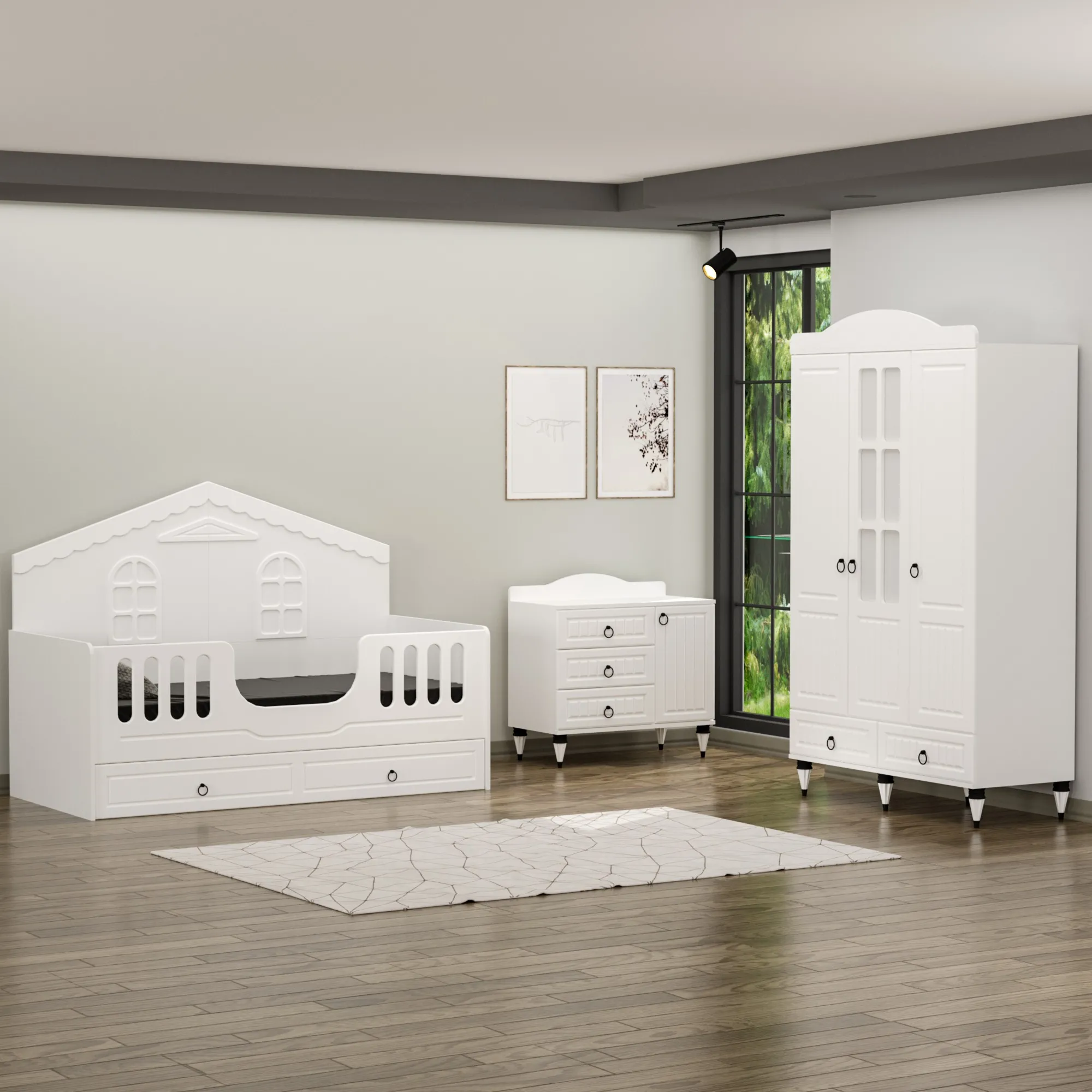 Sude Membran Yavrulu Montessori Çocuk Odası Takımı - Beyaz