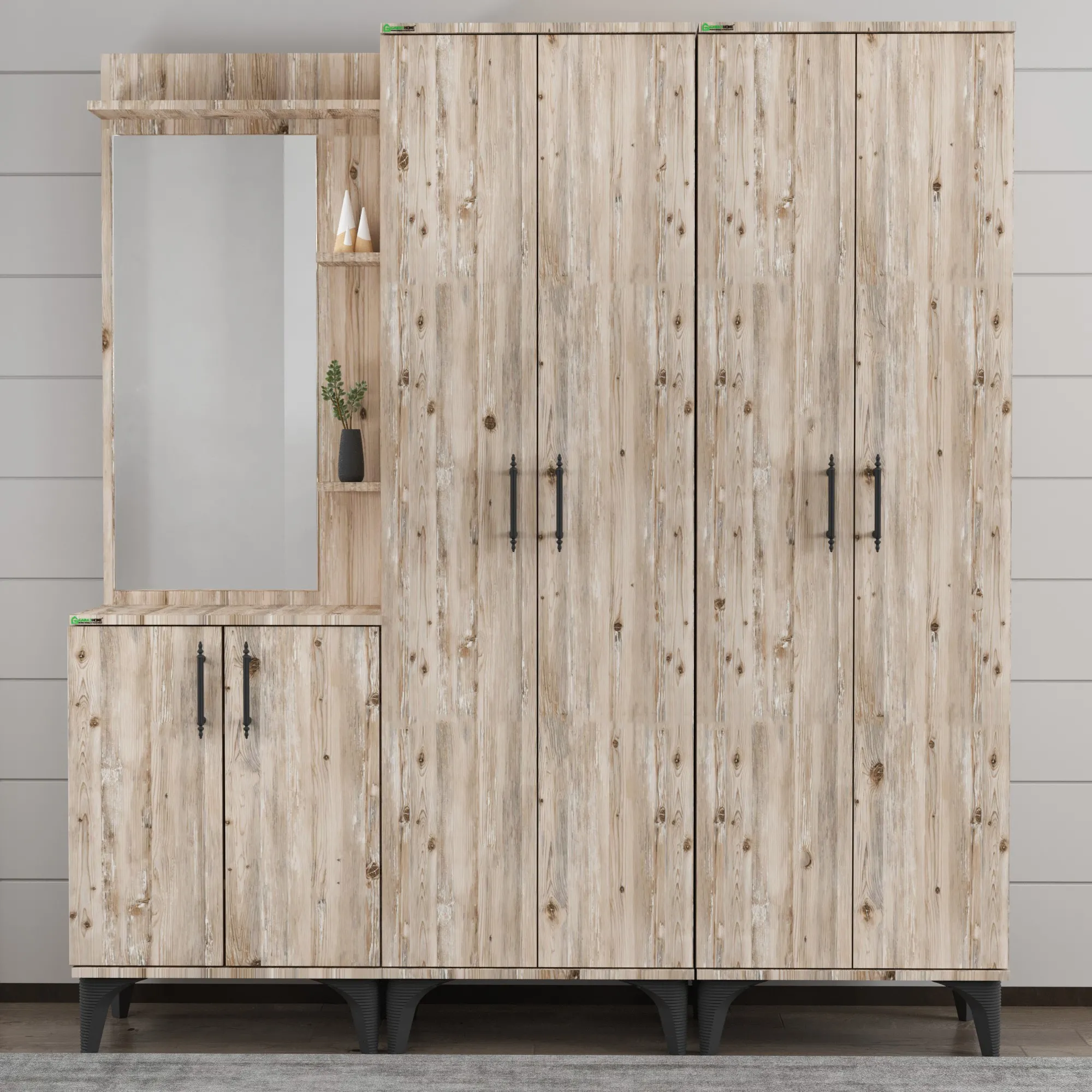Garaj Home Modern Aynalı Raflı Portmanto Vestiyer