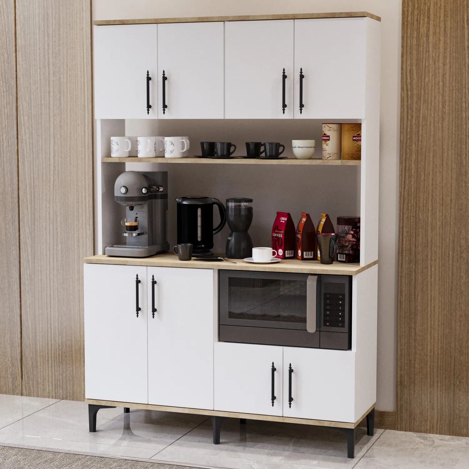 Garaj Home Elmas Çok Amaçlı Dolap Raflı Kahve Köşesi - Meşe