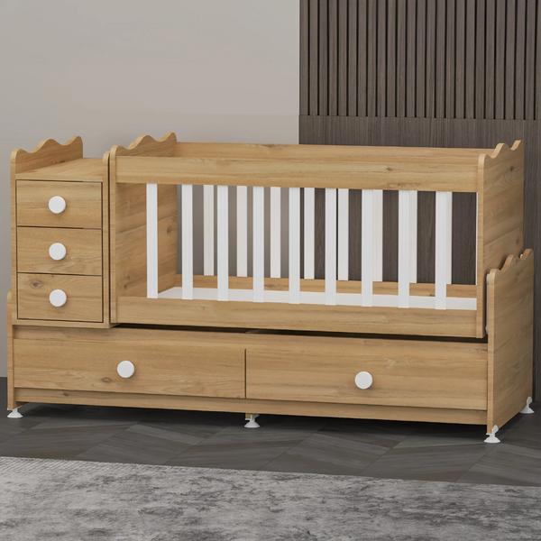 Ürünümüzü beşik olarak kullandırktan sonra 3 çekmeceli komodin ve 2 çekmeceli 65x160 karyola olarak kullanabilirsiniz.