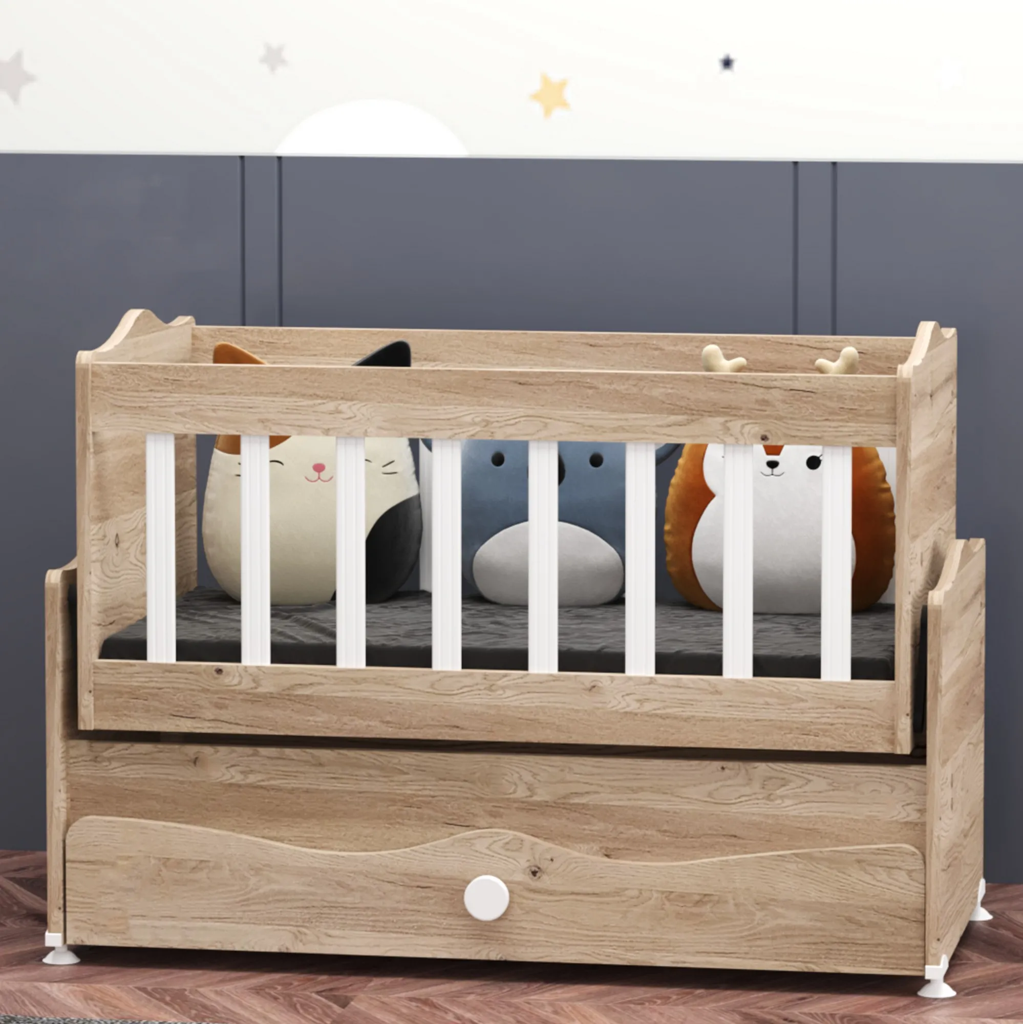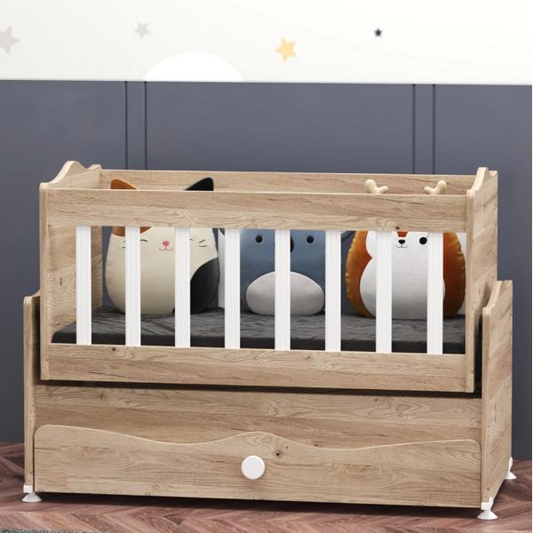 İnci Çekmeceli SallanırBeşik Anne Yanı Bebek Beşiği - Meşe