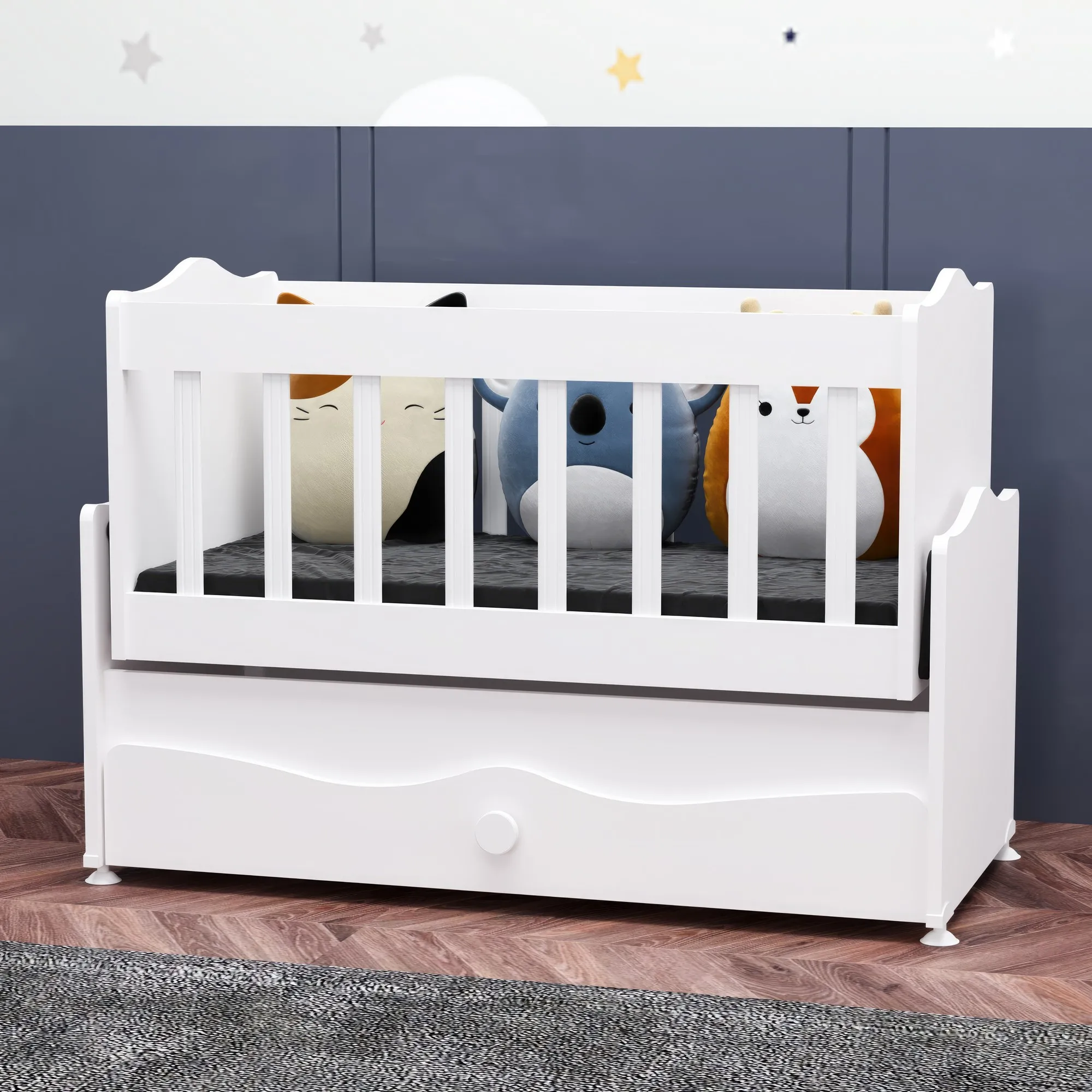 İnci Çekmeceli SallanırBeşik Anne Yanı Bebek Beşiği - Beyaz