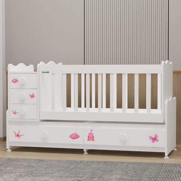 Melina 5 Çekmeceli Büyüyen MDF Çıtalı Beşik - Prenses