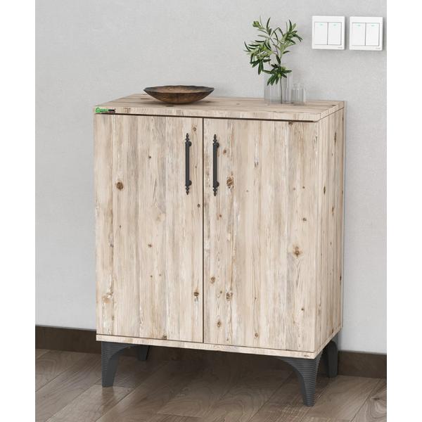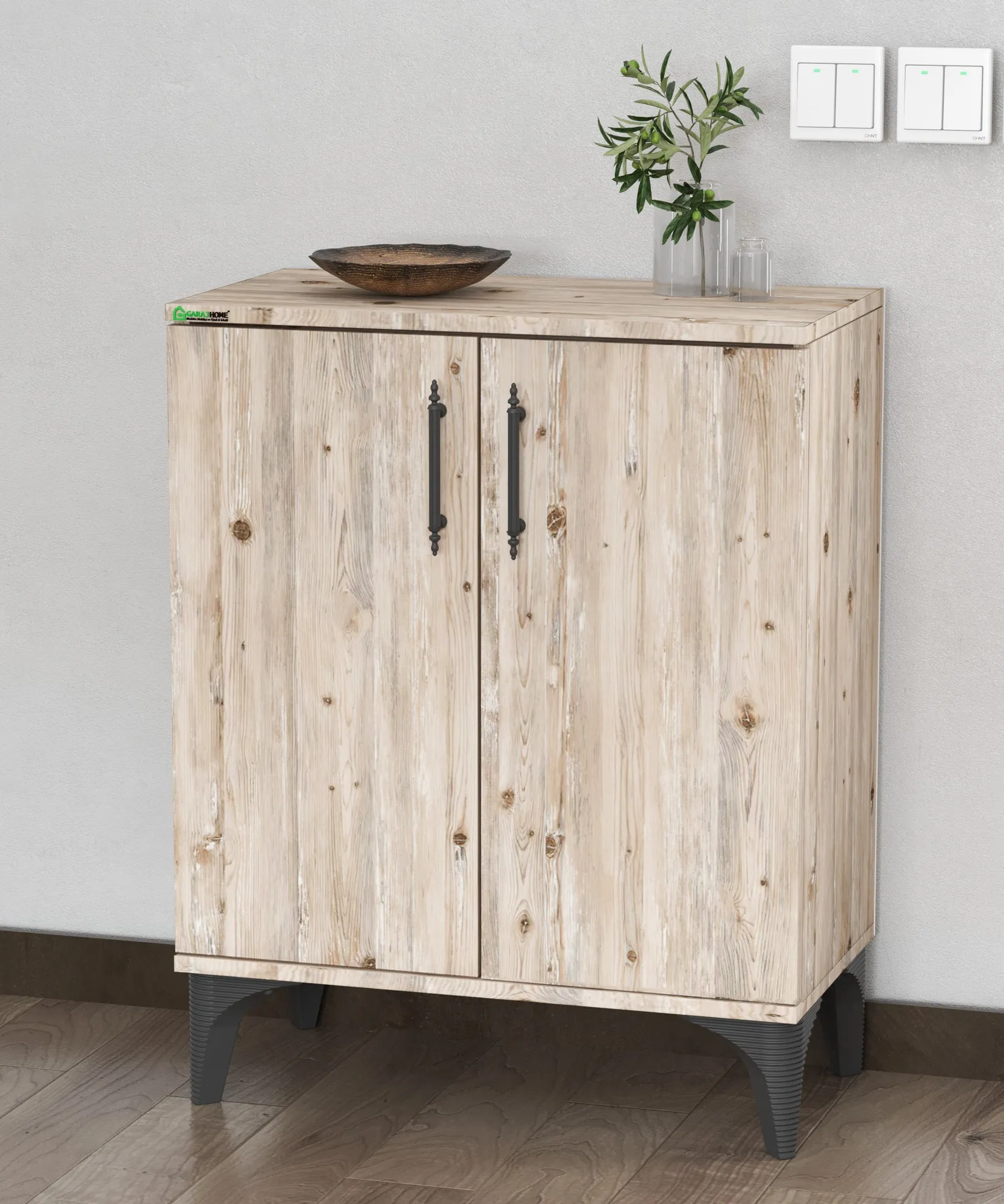 İki kapaklı ve 4 raflı modern çok amaçlı dolabımız 70x38x90 cm ölçüsündedir.Yerden yüksek ayakları ile kullanışlı ve şık bir tasarıma sahiptir.