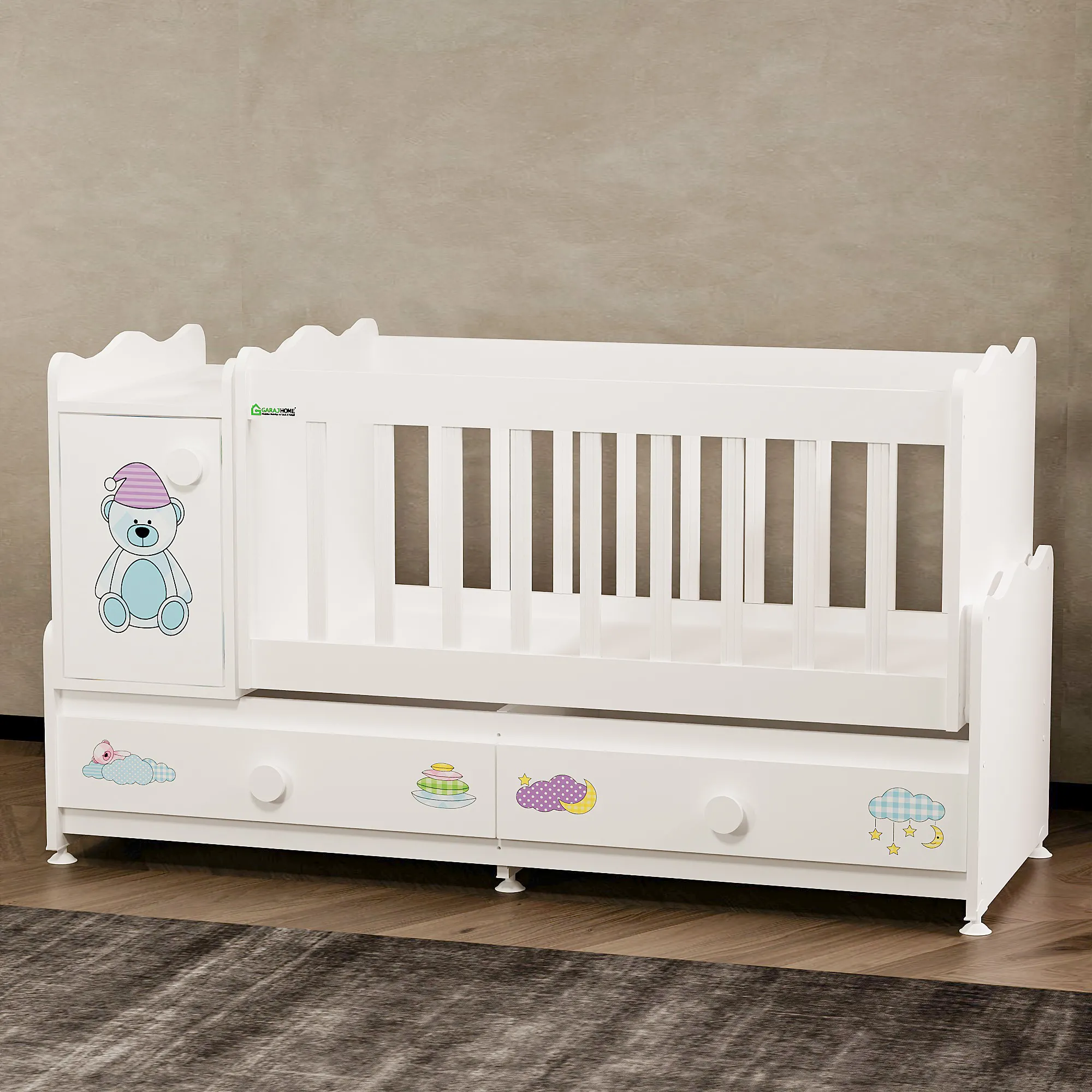 Garaj Home Pırlanta Dolaplı Uzayan 60x120 Beşik |