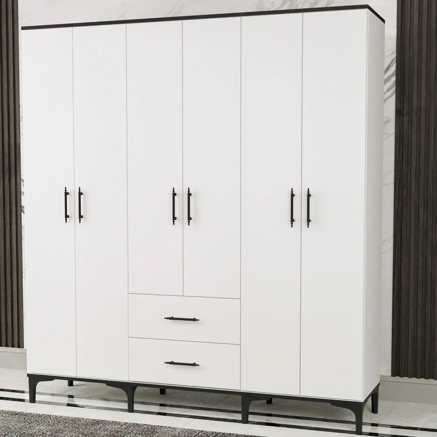 Garaj Home 6 Kapaklı 2 Çekmeceli Dolap - Beyaz