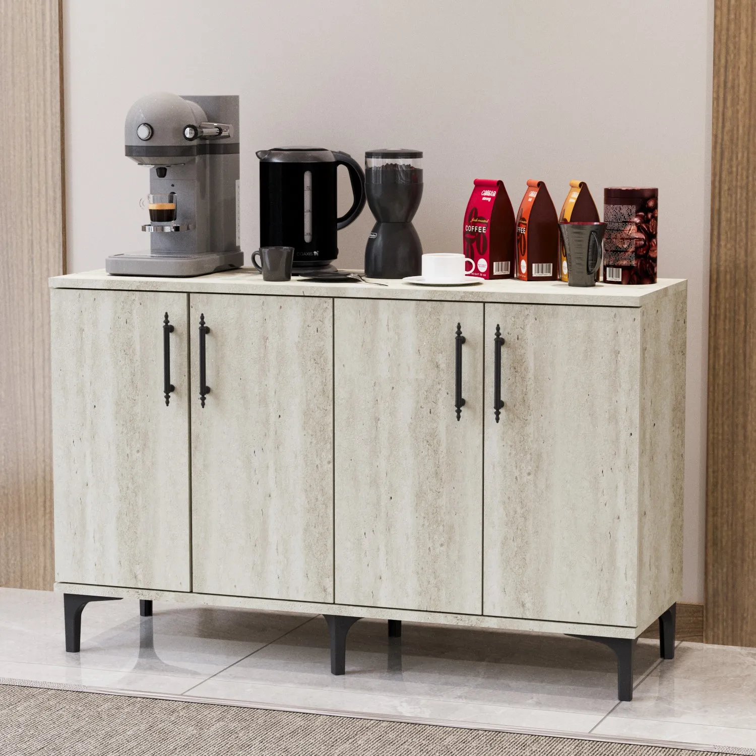 Garaj Home Nehir Çok Amaçlı Dolap Kahve Köşesi - Traverten
